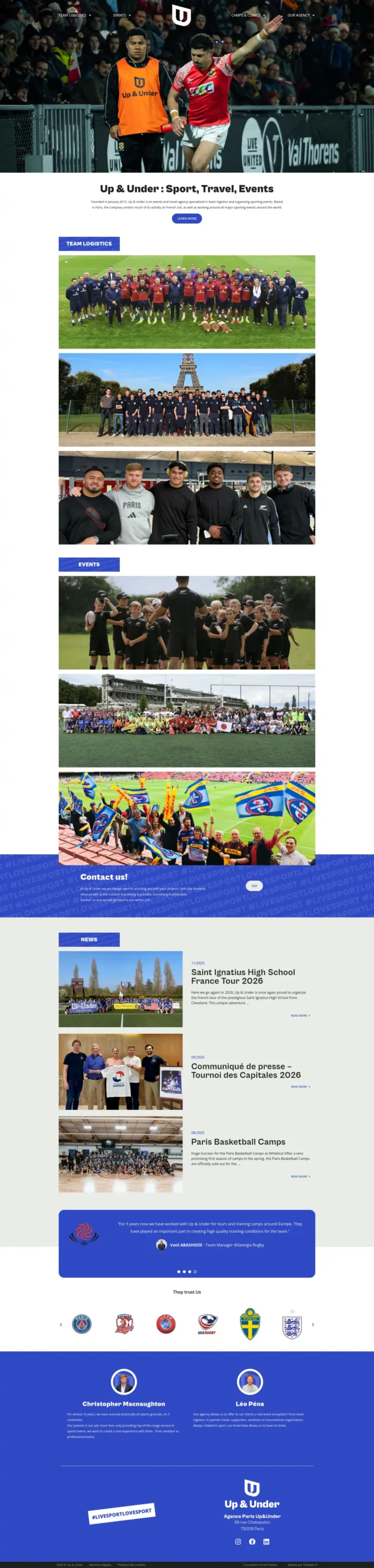 Up & Under Paris souhaitait créer son site vitrine à partir de maquettes conçues par l'agence créative "Fonds Perdus". Les priorités : un site clair et facile à faire évoluer dans le temps, des performances optimales malgré un contenu visuel riche et un accompagnement sur les aspects techniques (hébergement, configuration).